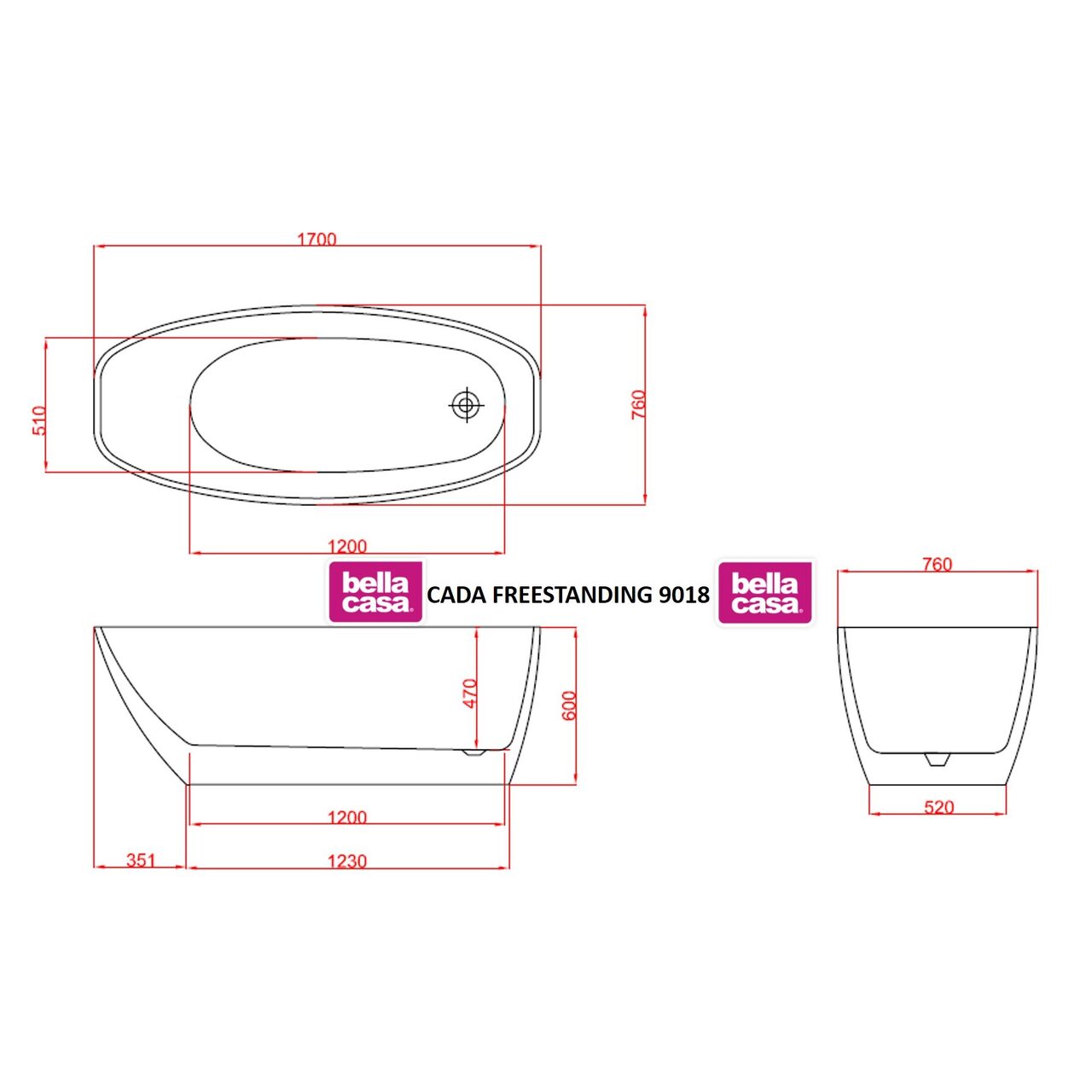 Cada freestanding realizata din material acril sanitar glossy este construita pe structura de fibra de sticla.