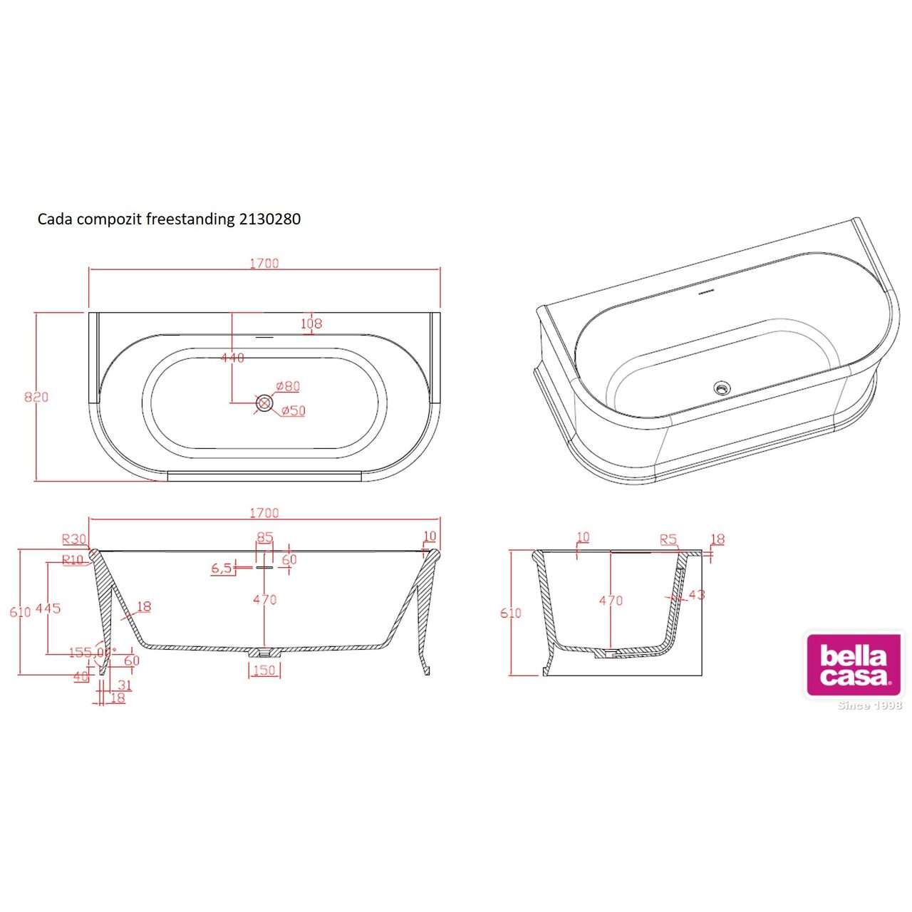Cada freestanding realizata din material compozit este asemanatoare ca greutate si rezistenta cu, cazile din fonta.