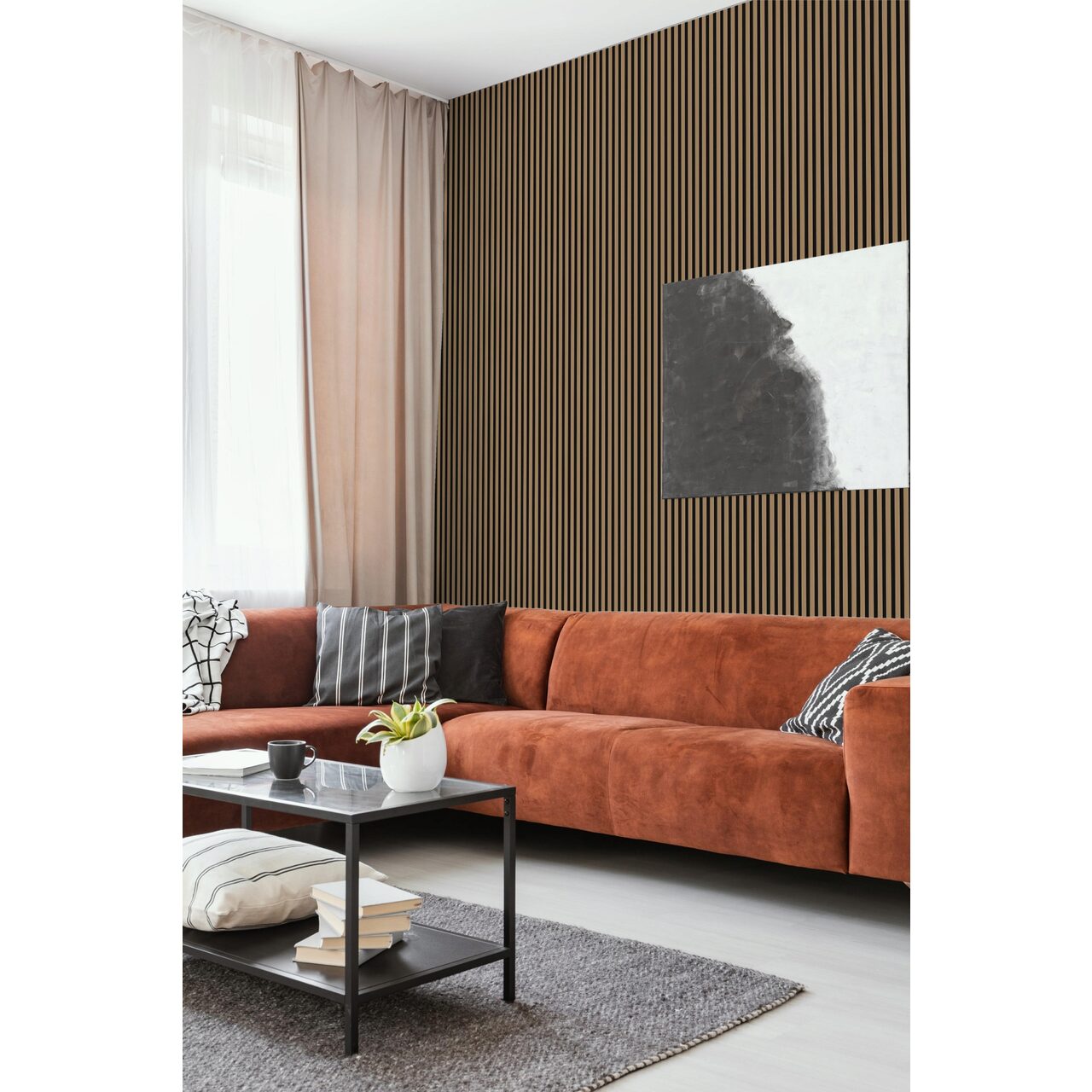 Instalarea rapida si simpla prin lipire va permite sa transformati rapid orice spatiu. Lipirea se face cu adezivi pe baza de apa sau speciali pentru DURCOMPOZIT. Placile pot fi tăiate cu ușurință la dimensiunea dorită cu un ferăstrău. In cazul in care riflajul este montat intre 2 pereti (stanga si dreapta) nu sunt necesare terminatii in alte situatii recomandam si achizitia de terminatii pentru un aspect deosebit.